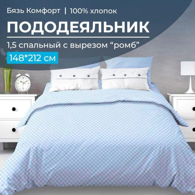 Пододеяльник 1,5-спальный с вырезом в виде ромба, 148*212 см, бязь "Комфорт". Сторона ромба равна 35 см.