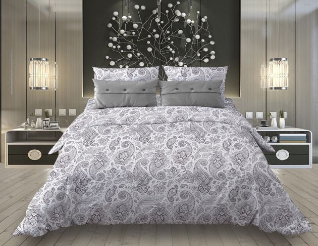 Пододеяльник 1,5-спальный, с вырезом "ромб", бязь "Комфорт" (Восточные огурцы, белый)