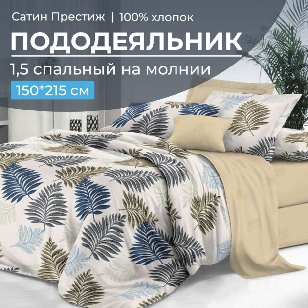 Красивый 1,5 спальный пододеяльник на молнии из сатина «Престиж» размером 150х215, плотностью ткани 115 г/м2. Материал - 100% хлопок, обеспечивающий свежесть и комфортный сон. Сатин «Престиж» имеет очень мягкое и приятное на ощупь плетение. Ткань не подвержена образованию катышков, не электризуется, обладает хорошей воздухопроницаемостью, а также она гипоаллергенна и абсолютно безвредна для здоровья. Поэтому белье из сатина «Престиж» можно застилать детям и беременным. В нашем каталоге вы сможете собрать замечательный комплект постельного белья, исходя из Ваших предпочтений и размеров спальных принадлежностей, а благодаря великолепному качеству ткани и пошива постельное белье прослужит долго и будет радовать Вас и ваших близких. Размер пододеяльника