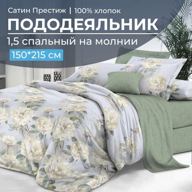 Пододеяльник 1,5-спальный, сатин "Престиж" (Нежный цветок (основа))