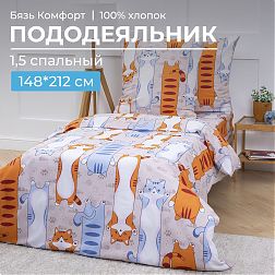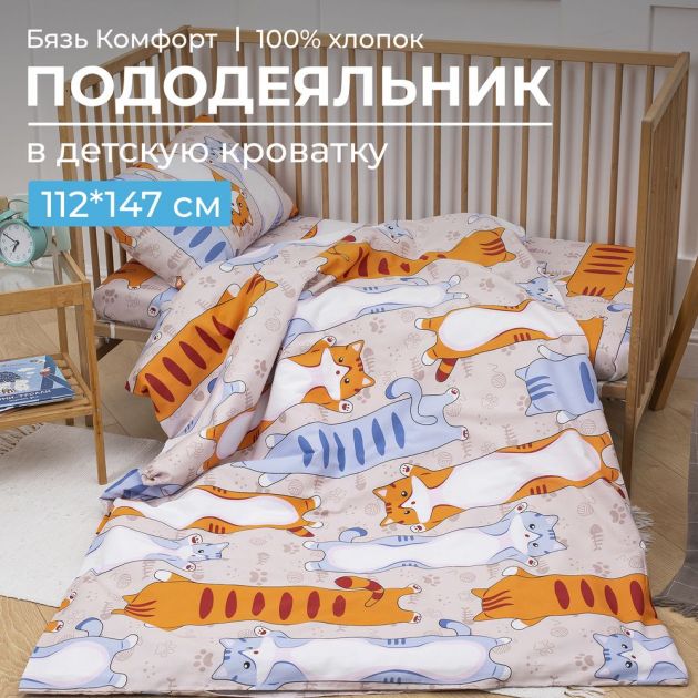 Пододеяльник 112*147 см в детскую кроватку, бязь "Комфорт" (Кот батон)