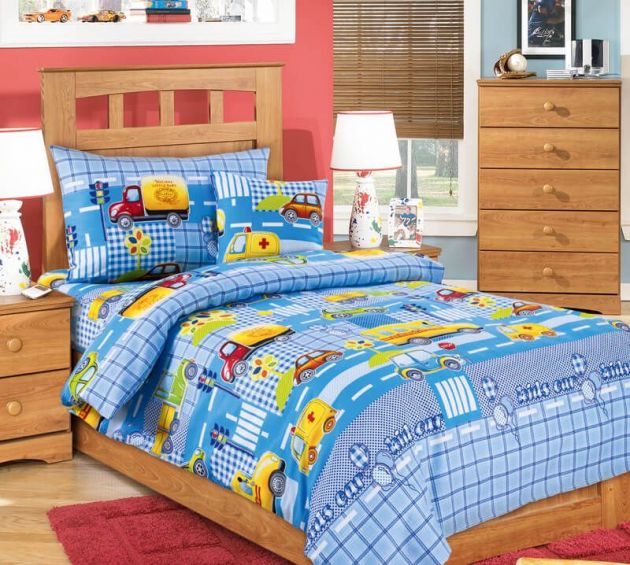 Пододеяльник 112*147 см в детскую кроватку, бязь "Люкс" (Машинки, голубой)