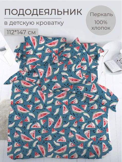 Пододеяльник 112*147 см в детскую кроватку, перкаль, детская расцветка (Арбузики, бирюзовый)