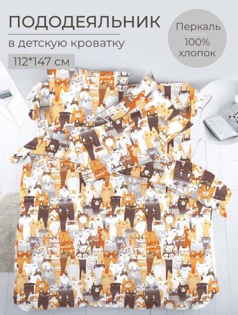 Пододеяльник 112*147 см в детскую кроватку, перкаль, детская расцветка (Котики)