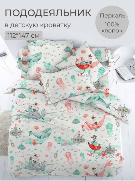 Пододеяльник 112*147 см в детскую кроватку, перкаль, детская расцветка (Морячок)