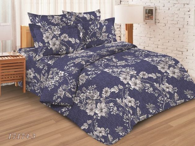 Пододеяльник 2-спальный, бязь ГОСТ (Цветущая лиана, синий)