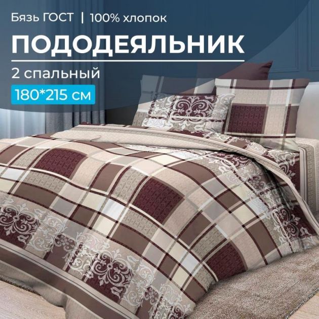 Пододеяльник 2-спальный, бязь ГОСТ (Лестер, бежевый)