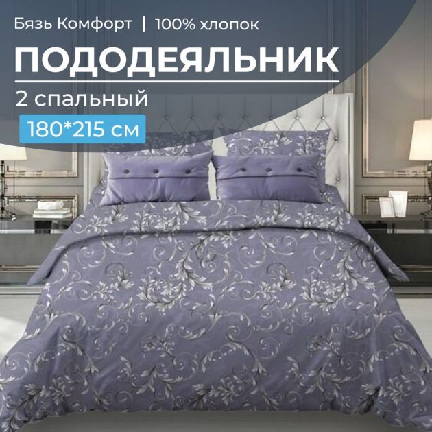 Пододеяльник 2-спальный, бязь "Комфорт" (Валенсия, сиреневый)