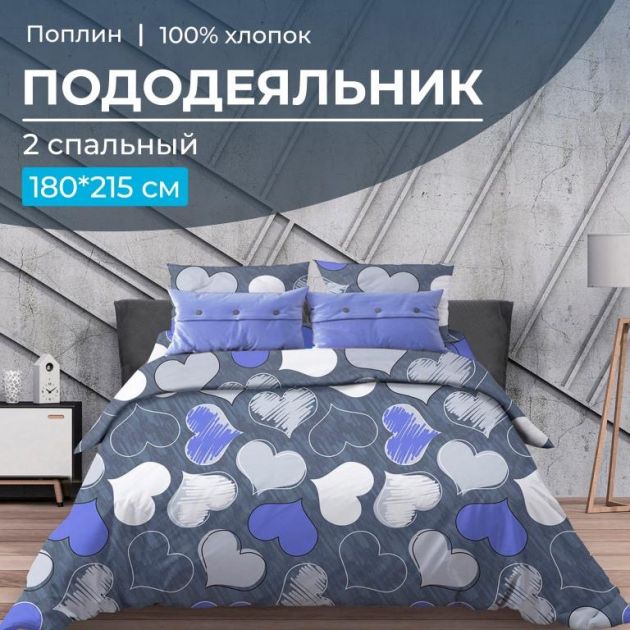 Пододеяльник 2-спальный, поплин (Романтика, синий)
