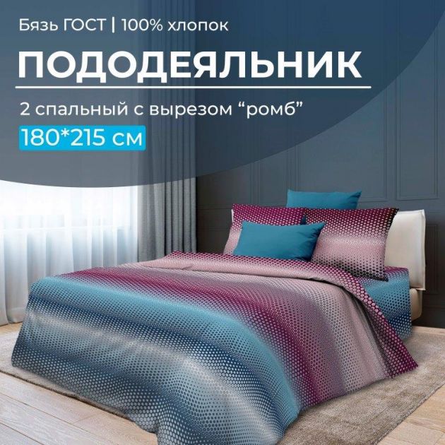 Пододеяльник 2-спальный из бязи ГОСТ плотностью 140г/м2. Ткань плотная, лощеная, высочайшего качества. Вход в пододеяльник выполнен в виде ромба.