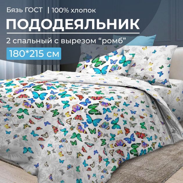 Пододеяльник 2-спальный из бязи ГОСТ плотностью 140г/м2. Ткань плотная, лощеная, высочайшего качества. Вход в пододеяльник выполнен в виде ромба.