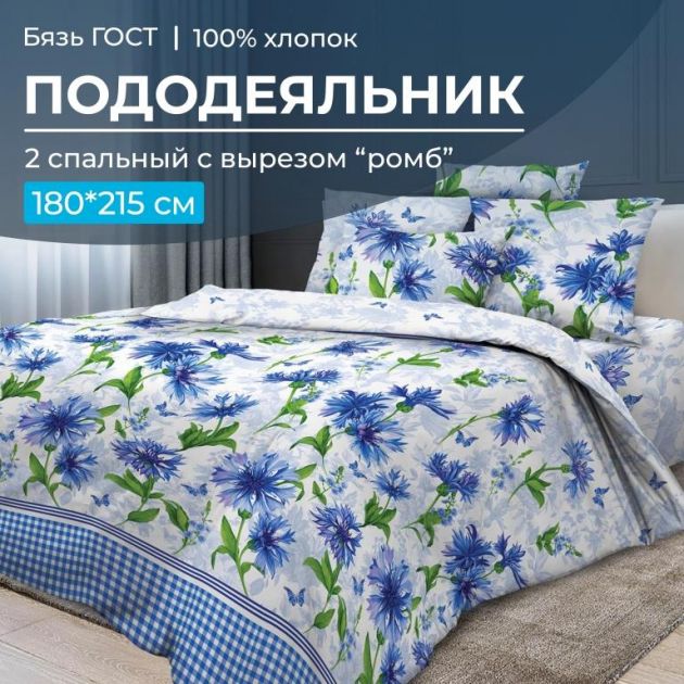 Пододеяльник 2-спальный с вырезом "ромб", бязь ГОСТ (Корнфлауэр)
