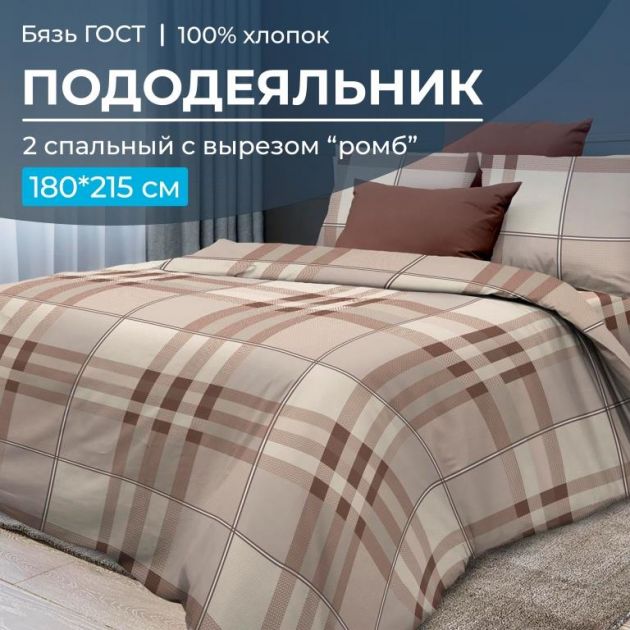 Пододеяльник 2-спальный с вырезом "ромб", бязь ГОСТ (Лионель, бежевый, вид 1)
