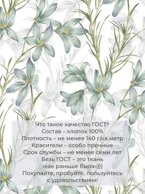 Мы являемся производителями, сами следим за выпускаемой продукцией и гарантируем высокое качество! Наши изделия произведены в Ивановской области, имеют сертификацию качества "ГОСТ 31307-2005", а также зарегистрированы в государственной системе маркировки "Честный знак". Размер пододеяльника