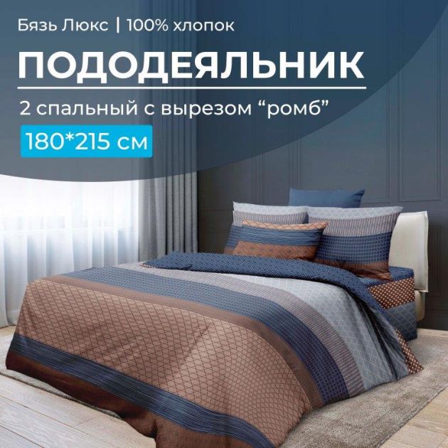 Пододеяльник 2-спальный, с вырезом "ромб", бязь "Люкс" (Геометрия)