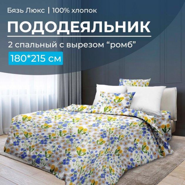 Пододеяльник 2-спальный размером 180*215 см плотностью ткани 121 г/м2 из бязи «Люкс» — ткани из 100% натурального хлопка. Вход в пододеяльник выполнен в виде "ромба". В пододеяльник такого типа удобно заправлять одеяло. Такие пододеяльники в настоящее время редко встречаются в продаже, хотя многие покупатели их очень любят. По сравнению с обычной, бязь "Люкс" обладает более нежной и тонкой текстурой, но одновременно с этим прочная и плотная. Постельное белье из такой бязи не электризуется, мало сминается и легко отстирывается, пропускает воздух и влагу, высокоустойчивое к износу и абсолютно безопасно для здоровья. Рисунки на ткани из бязи "Люкс" яркие, выдерживают многочисленное использование. Качественные и красивые пододеяльники из нашей коллекции выпускаются в соответствии с требованиями ГОСТ. Мы являемся производителями, сами следим за выпускаемой продукцией и гарантируем высокое качество! Размер пододеяльника