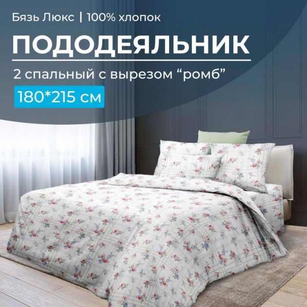Пододеяльник из бязи "Люкс" улучшенного качества. Размер 180*215 см. Сторона ромба равна 35 см. Плотность бязи 121 г/м2. Размер пододеяльника