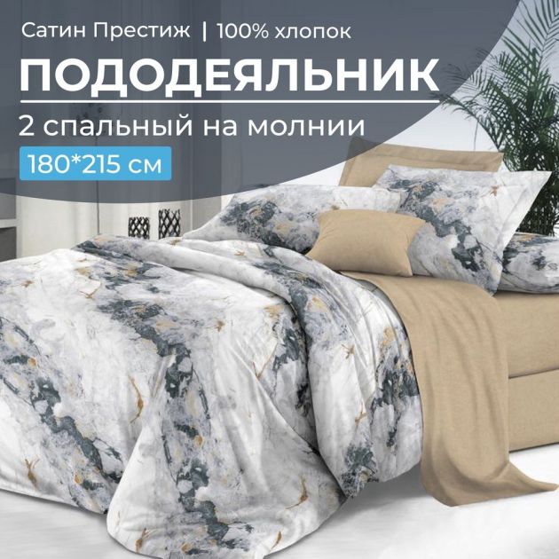 Красивый 2 спальный пододеяльник на молнии из сатина «Престиж» размером 180х215, плотностью ткани 115 г/м2. Материал - 100% хлопок, обеспечивающий свежесть и комфортный сон. Сатин «Престиж» имеет очень мягкое и приятное на ощупь плетение. Ткань не подвержена образованию катышков, не электризуется, обладает хорошей воздухопроницаемостью, а также она гипоаллергенна и абсолютно безвредна для здоровья. Поэтому белье из сатина «Престиж» можно застилать детям и беременным. В нашем каталоге вы сможете собрать замечательный комплект постельного белья, исходя из Ваших предпочтений и размеров спальных принадлежностей, а благодаря великолепному качеству ткани и пошива постельное белье прослужит долго и будет радовать Вас и ваших близких. Размер пододеяльника