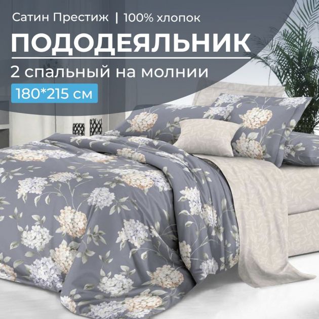 Пододеяльник 2-спальный, сатин "Престиж" (Гортензии (основа))