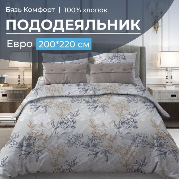Пододеяльник Евро 200*220 см, бязь "Комфорт" (Симфония, серо-бежевый)
