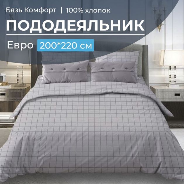 Пододеяльник Евро 200*220 см, бязь "Комфорт" (Таттерсол, светло-серый)