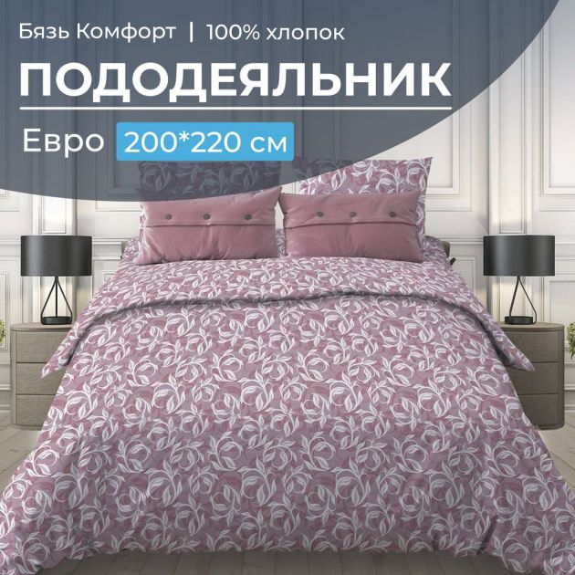 Пододеяльник Евро 200*220 см, бязь "Комфорт" (Вьюнок, розовый)
