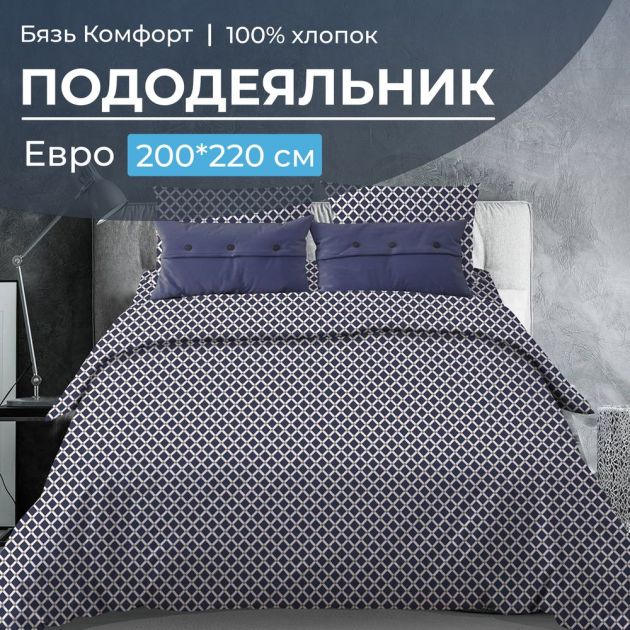 Пододеяльник Евро 200*220 см, бязь "Комфорт" (Виши, темно-синий)