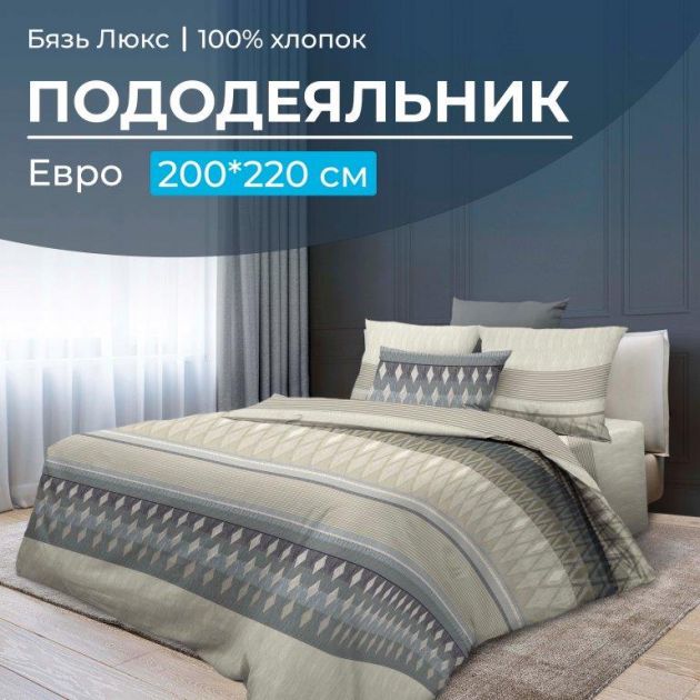 Пододеяльник Евростандарт размером 200*220 см из бязи "Люкс", которая не линяет, не пиллингуется, практически не дает усадки. Состав ткани - хлопок 100 %. Прорезь пододеяльника расположена в нижнем шве. Плотность бязи 121 г/м2. Размер пододеяльника