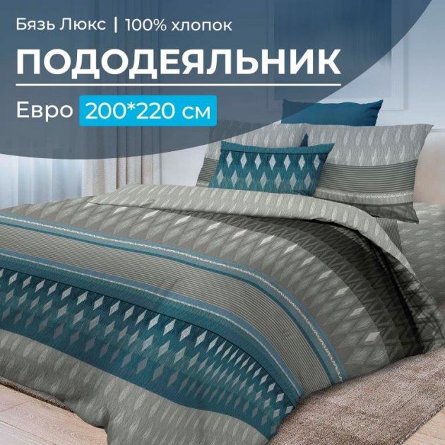 Пододеяльник Евростандарт размером 200*220 см из бязи "Люкс", которая не линяет, не пиллингуется, практически не дает усадки. Состав ткани - хлопок 100 %. Прорезь пододеяльника расположена в нижнем шве. Плотность бязи 121 г/м2. Размер пододеяльника