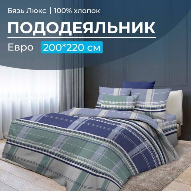 Пододеяльник Евростандарт размером 200*220 см из бязи "Люкс", которая не линяет, не пиллингуется, практически не дает усадки. Состав ткани - хлопок 100 %. Прорезь пододеяльника расположена в нижнем шве. Плотность бязи 121 г/м2. Размер пододеяльника