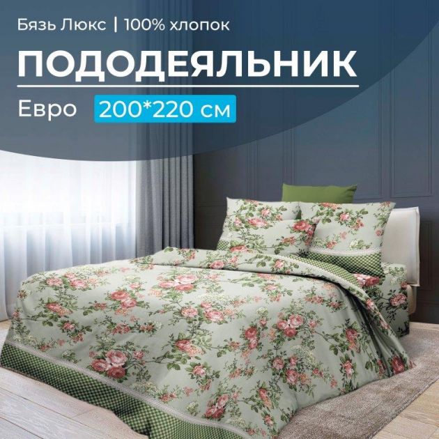 Пододеяльник Евростандарт размером 200*220 см из бязи "Люкс", которая не линяет, не пиллингуется, практически не дает усадки. Состав ткани - хлопок 100 %. Прорезь пододеяльника расположена в нижнем шве. Плотность бязи 121 г/м2. Размер пододеяльника