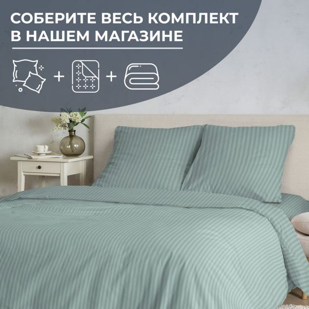 Пододеяльник Евро 200*220 см, перкаль (Лунная соната, шалфей)