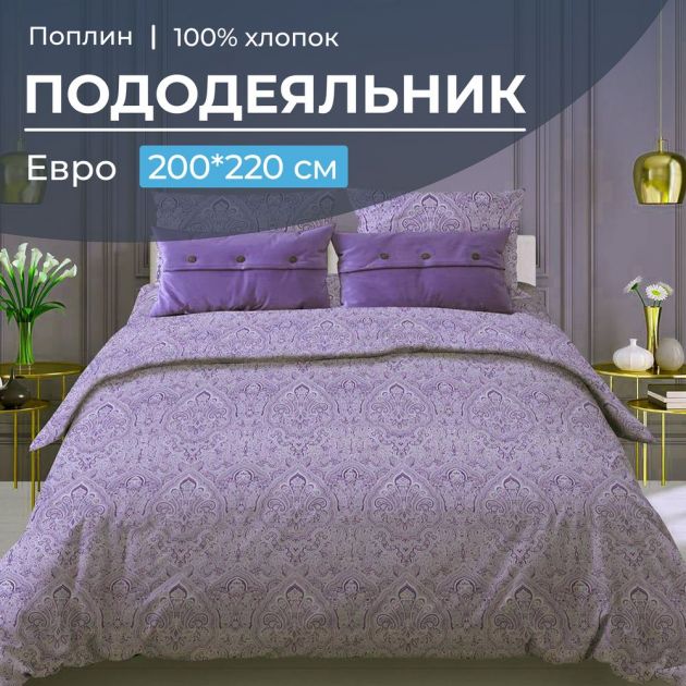 Пододеяльник Евро 200*220 см, поплин (Дамаск, фиолетовый)
