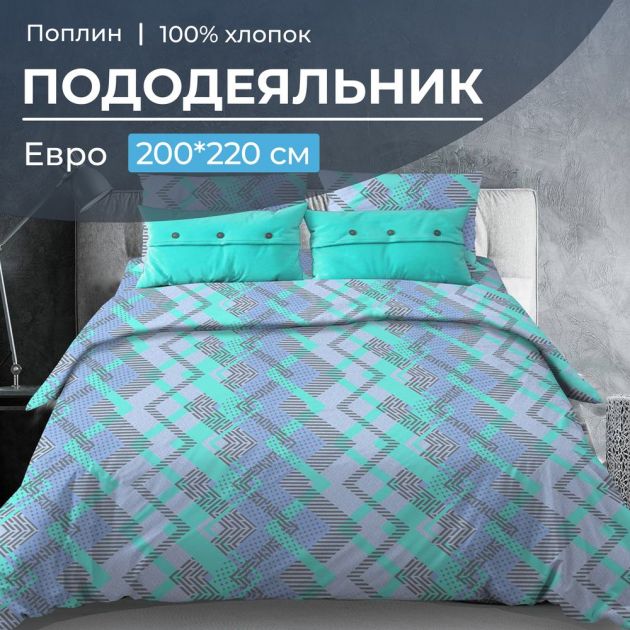 Пододеяльник Евро 200*220 см, поплин (Ниагара, бирюзовый)