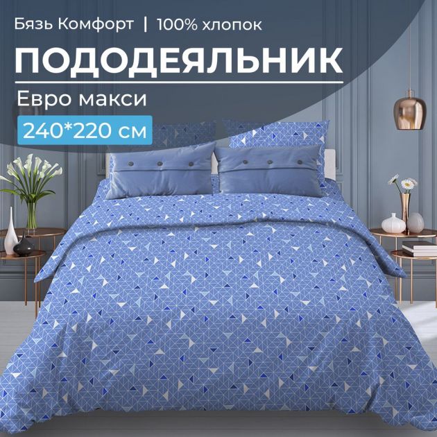 Пододеяльник Евромакси 240*220 см, бязь "Комфорт" (Треугольники, светло-синий)