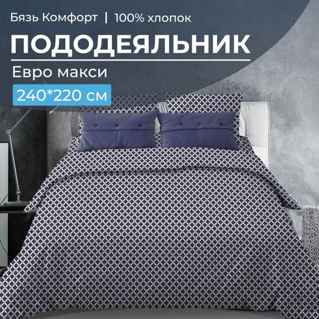 Пододеяльник Евромакси 240*220 см, бязь "Комфорт" (Виши, темно-синий)
