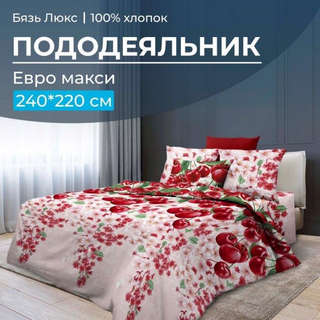 Пододеяльник Евромакси 240*220 см, бязь "Люкс" (Спелая вишня)
