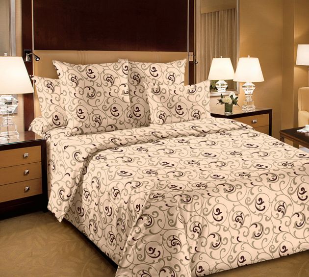 Пододеяльник Евромакси 240*220 см, бязь "Люкс" (Вензель, бежевый)