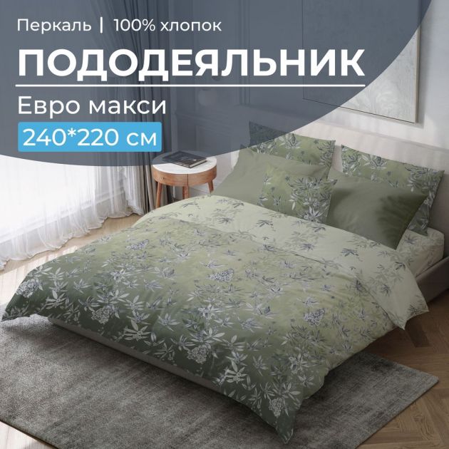 Пододеяльник Евромакси 240*220 см, перкаль (Кассиопея, зеленый)