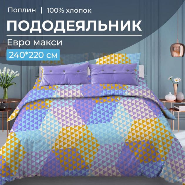 Пододеяльник из поплина, размер Евромакси (прорезь в нижнем шве).