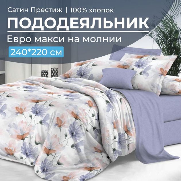 Пододеяльник Евромакси 240*220 см, сатин "Престиж" (Цветочная фантазия (основа))