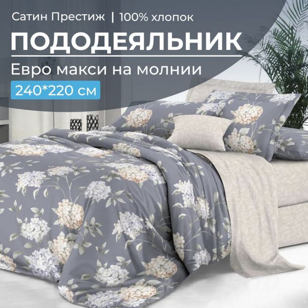 Пододеяльник Евромакси 240*220 см, сатин "Престиж" (Гортензии (основа))