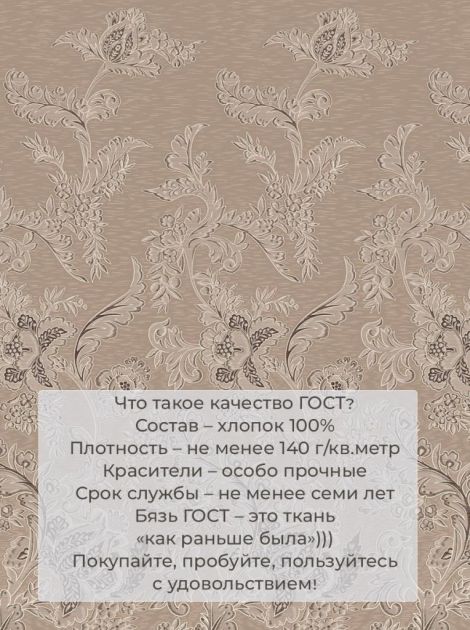 Из-за повышенной плотности ткани рисунки на ней смотрятся ярко и чётко. Ну и, конечно, у этой ткани абсолютно натуральный состав, хлопок 100 %, она очень комфортна, не деформируется, хорошо впитывает влагу, позволяет коже дышать и способствует вашему полноценному отдыху!