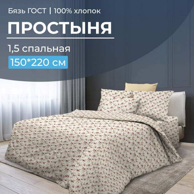 1,5-спальные простыни из набивной бязи стандарта ГОСТ размером 150*220 см Группа товара