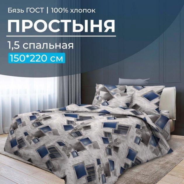Простыня 1,5-спальная, бязь ГОСТ (Марсель)