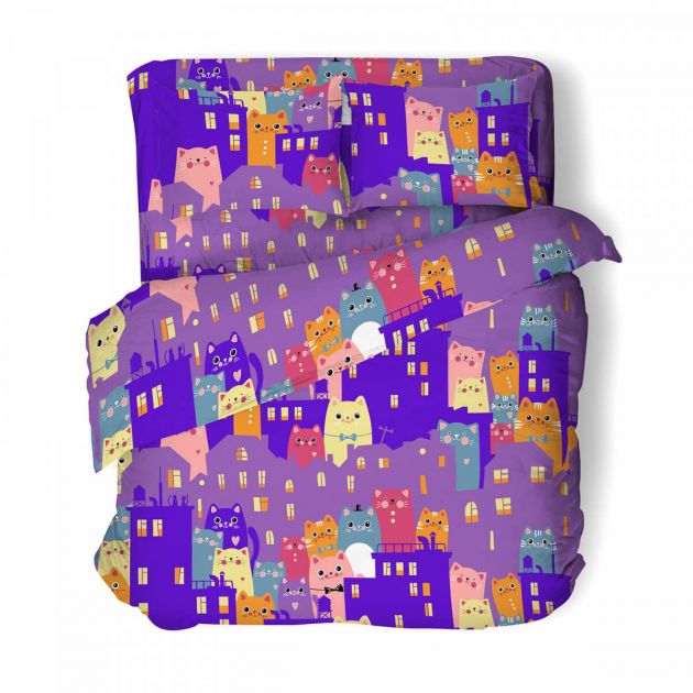Простыня 1,5-спальная, бязь "Комфорт", детская расцветка (Пушистые в городе)
