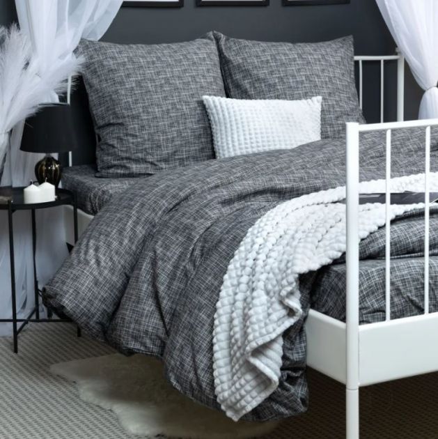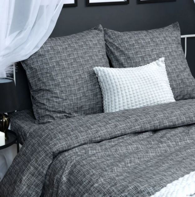 Простыня 1,5-спальная, бязь "Комфорт" (Контур, темно-серый)