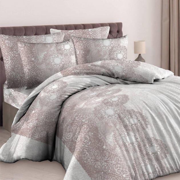 Простыня 1,5-спальная, бязь "Комфорт" (Кружевной вальс, бежевый)