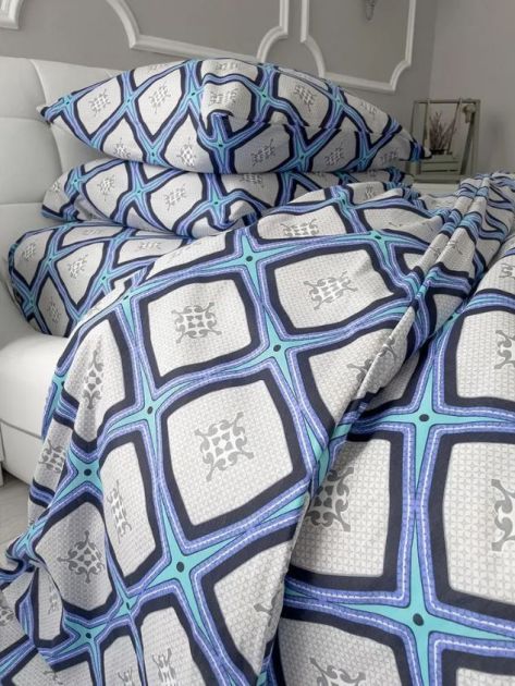 Простыня 1,5-спальная, бязь "Комфорт" (Панно, бирюзовый)
