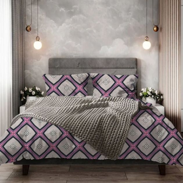 Простыня 1,5-спальная, бязь "Комфорт" (Панно, розовый)
